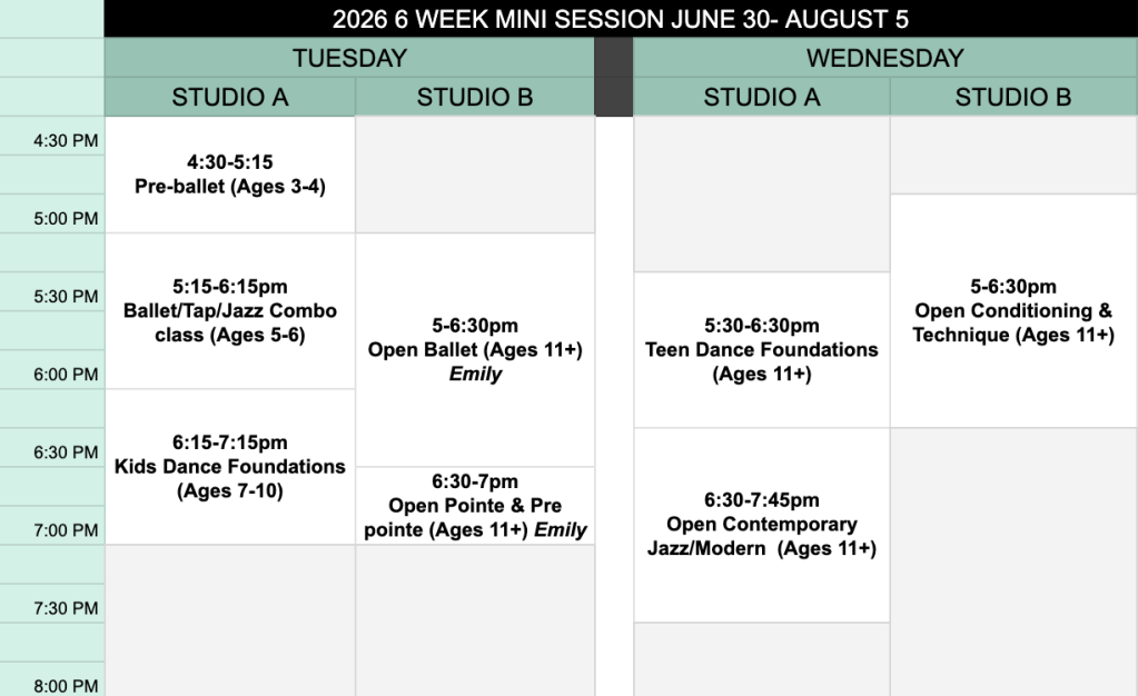 Class Descriptions & Dress Code